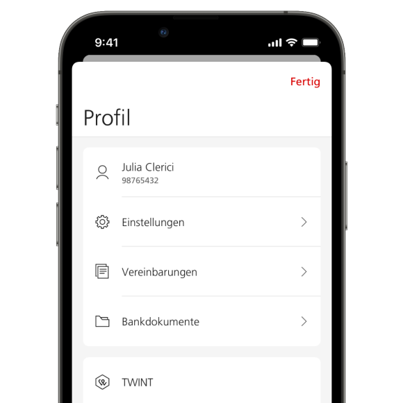 1. Loggen Sie sich in die UBS Mobile Banking App ein.