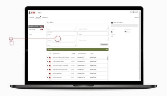 2. Wählen Sie Dokumente und dann Bankdokumente – Ihr UBS Safe wird geöffnet.