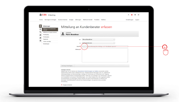 4. Als Betreff schreiben Sie bitte "Grössere Zahlung ankünden"