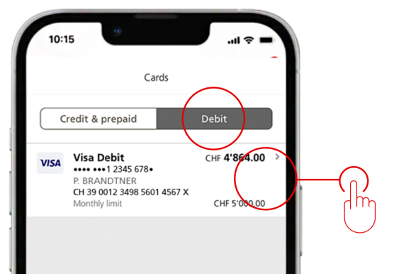Tipp: Bitte beachten Sie, dass Debitkarten nicht ins Minus gehen können. Sie können damit nur auf so viel Geld zugreifen, wie es Ihre gesetzte Limite oder der verfügbare Saldo auf dem Konto zulässt, das mit der Debitkarte verknüpft ist.