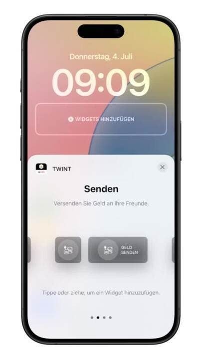 Mit dem Widget auf dem Sperrbildschirm greifen Sie mit nur einem Fingertipp auf verschiedene Funktionen der UBS TWINT App zu. Zum Beispiel auf den QR-Code-Scanner.
