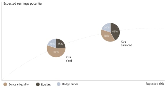 Like UBS Strategy Funds Sustainable, Strategy Xtra Funds provide a foundation for building up your wealth. The risk/return profile is optimized using hedge funds.