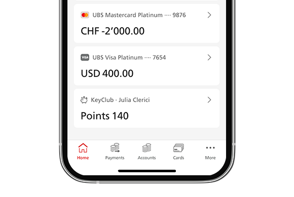 1. Ouvrez l'application UBS Mobile Banking et sélectionnez la tuile «Cartes».