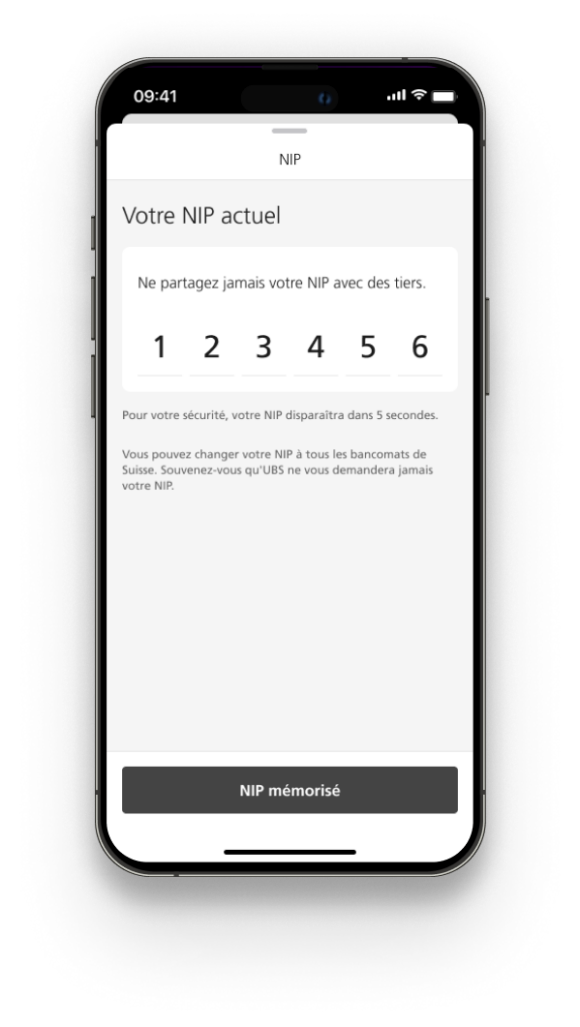 6. Confirmez la demande de l'application UBS Access pour afficher le NIP.