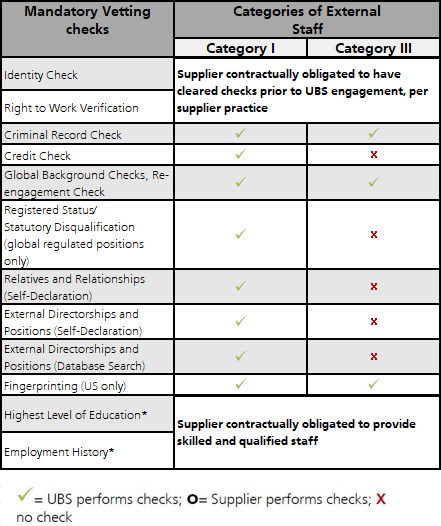 Timeframes for vetting checks | b. UBS Re-Engagement & Change from UBS to External Staff |