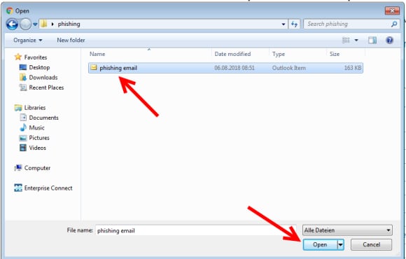 5. Select the email and click on "Open".