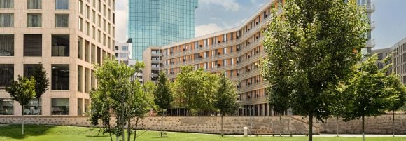 In the construction and renovation process, reducing embodied emissions is very important. Recycling or leaving whatever you can of the existing building in place when you upgrade it, using timber over steel and concrete where possible, and leaning into the circular economy is effective. Almost 80% of a building’s emissions are produced during its operational life, with heating and hot water responsible for the largest amount. Switching from fossil fuels to low-carbon, renewable energy options is therefore very important, as is producing energy onsite, for example through solar PV or heat pumps, and finally better insulation. For us the most challenging aspect as a building owner is the part we can’t control, which is how the building is used. We address this by working with our tenants, for example through green leases. This requires mutual commitment from owner and tenant, who jointly agree on measures like the heating level, waste disposal, etc. Changing behaviors is the second most important thing.