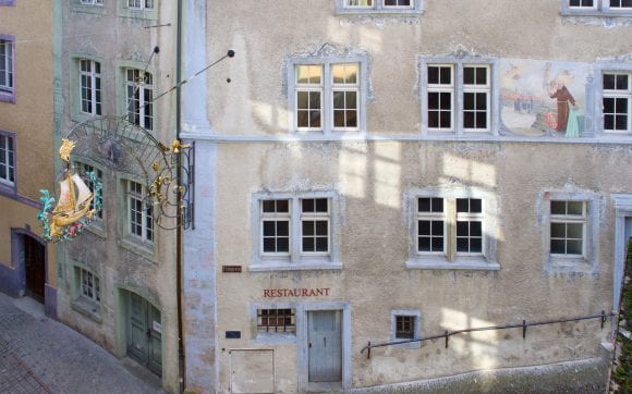 L’existence de l’auberge Zum Schiff est documentée pour la première fois en 1759. Dès 1978, elle appartient à l’association du musée de Laufenburg, qui l’a restaurée et gère depuis 1981 le Museum Schiff. Ce musée municipal se consacre à l’histoire du Haut Fricktal et des régions voisines de la Forêt-Noire. La bâtisse et sa collection sont toutes deux considérées comme des biens culturels suisses d’importance régionale. Après plus de 40 ans d’activité, le musée va entreprendre la modernisation et l’agrandissement de son bâtiment ainsi que de ses expositions. Dans ce cadre, des travaux de restauration sur l’édifice historique sont nécessaires, ce qui inclut la rénovation des façades richement décorées de fresques et de peintures. La réouverture est prévue pour 2026.
