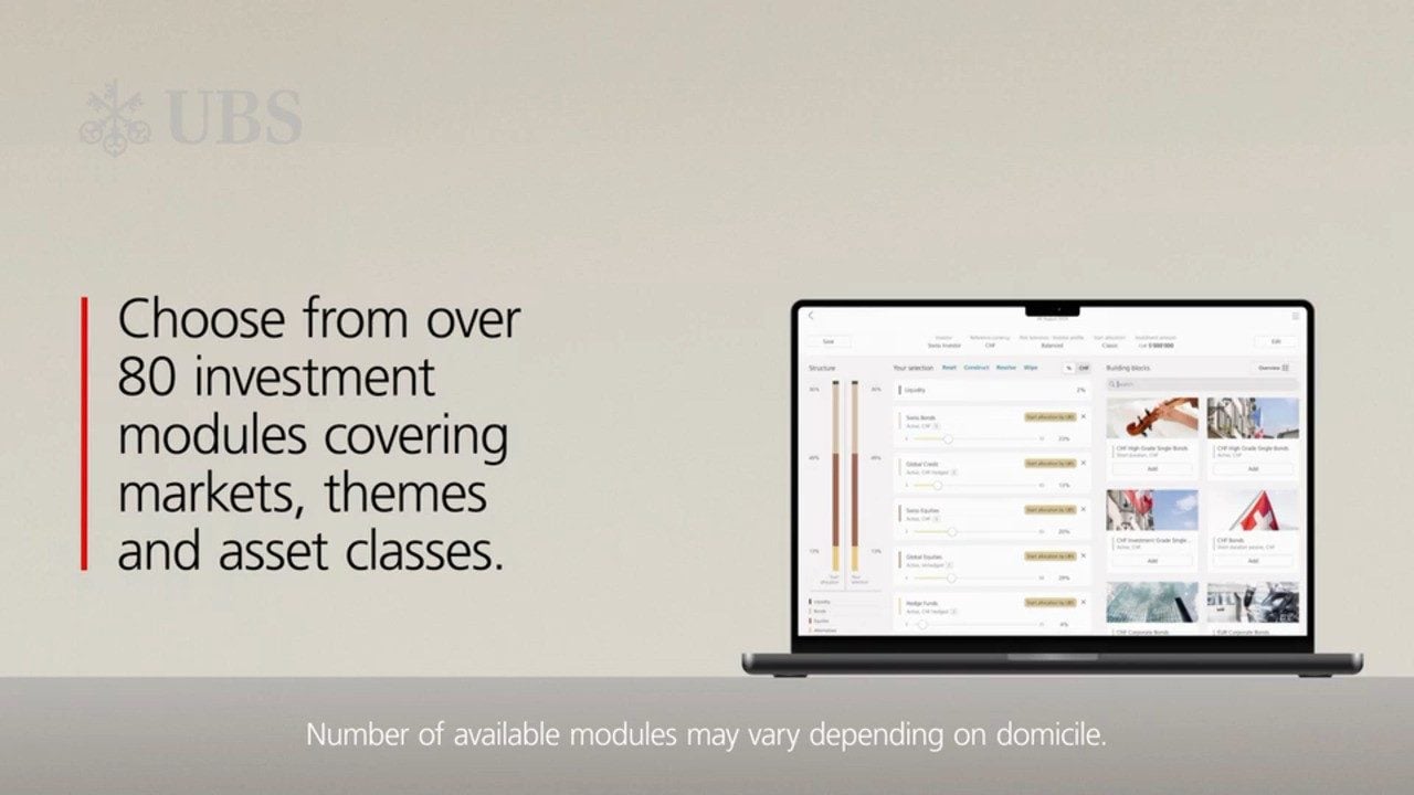 With UBS My Way you can create your personal portfolio from more than 80 investment modules and easily adapt it to your needs with our experts at your side.