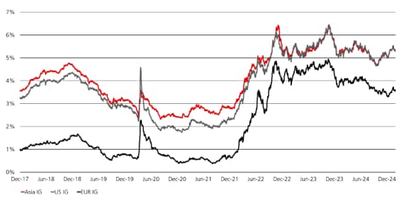 Yields | Latest | Asia IG | 5.30% | US IG | 5.30% | EUR IG | 3.42% |