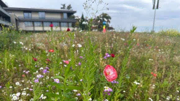 Eingebettet in die malerische Landschaft des Thurgauer Seerückens, kümmern wir uns mit Sorgfalt um die 18 404 m² grosse Aussenfläche unseres Geländes. Seit 2023 fördern wir gezielt die Biodiversität und erweitern die naturnahen Flächen auf unserem Areal.