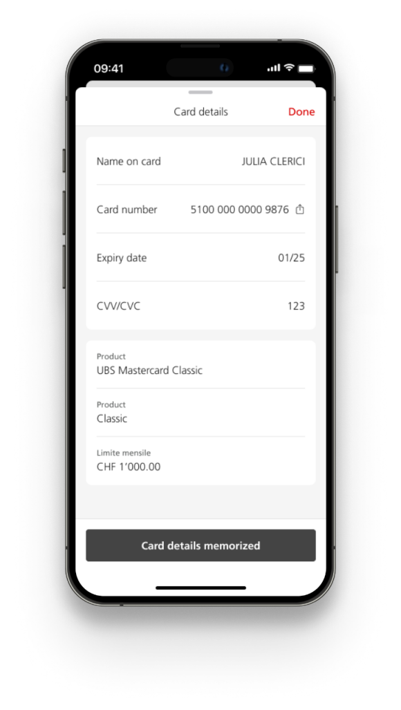 6. Confirm the UBS Access App request to display the card details.