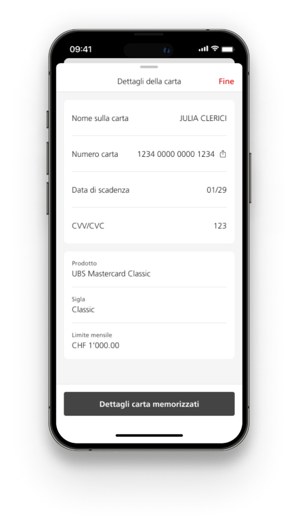 1. Aprite l'app UBS Mobile Banking e selezionate la tessera «Carte».