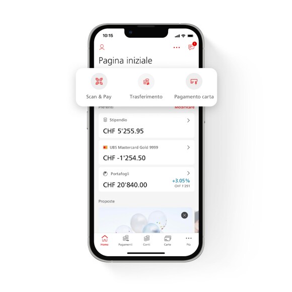 Potete visualizzare i conti, le carte e i portafogli più importanti e il suo avere del pilastro 3a a colpo d’occhio.
