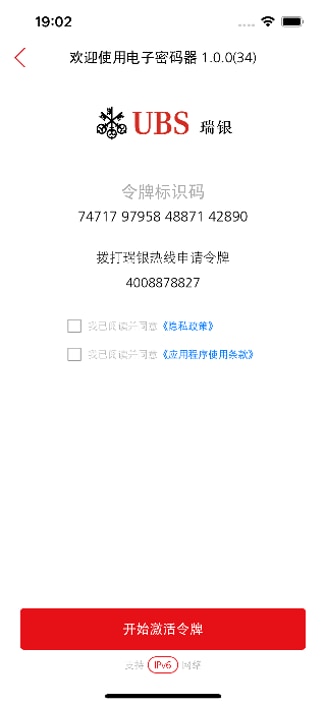 - 请打开您手机上的电子密码器APP,签署《隐私政策》和《使用条款》,随后点击“开始激活手机令牌”。