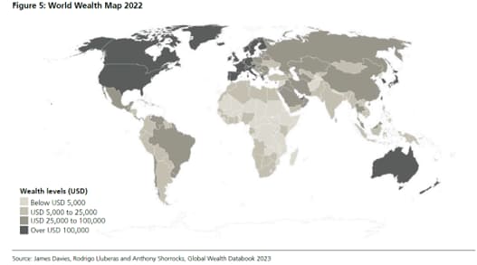 来源:James Davies,Rodrigo Lluberas和 Anthony Shorrocks,《2023年全球财富数据手册》