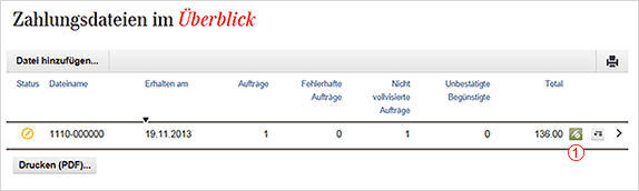 Freizugebende Zahlungen finden Sie unter «Zahlungen > Zahlung > Erfasste Zahlungen > Pendente Aufträge», freizugebende Zahlungsdateien unter «Zahlungen > Datentransfer > Übermittelte Zahlungsdateien».