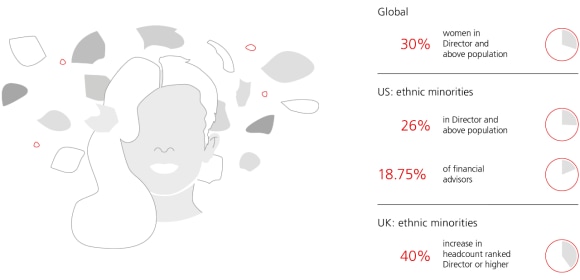 With nearly 73,000 employees working in around 50 countries and representing 141 nationalities, not only do we have the size to deliver at scale, but, with the variety of perspectives and experiences we have, we are able to provide breadth of expertise. Teams with diversity in gender, race, age, ethnicity, educational background, sexual orientation, gender identity and other factors better understand and relate to our equally diverse clients’ needs. Client landscapes evolve, responding to systemic and social transformation. The face of wealth is changing and clients need tailored advice responsive to their individual circumstances. Diversity of thought, opinion and experience help us make better decisions and be more innovative in offering solutions to our clients. In the same way, an inclusive work environment attracts highly talented people and makes this a better place to work for everyone.