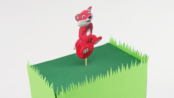 Il movimento circolare della manovella viene convertito in un movimento su e giù dello spiedino di legno attraverso il filo di ferro piegato.