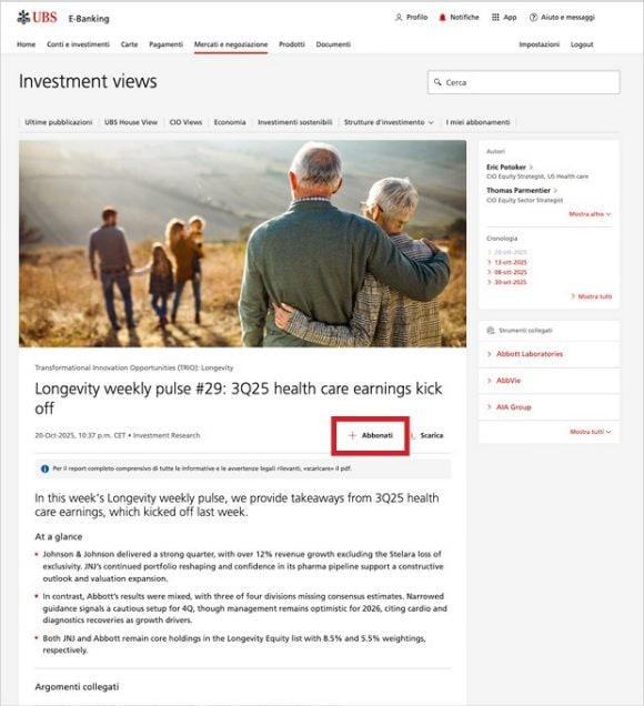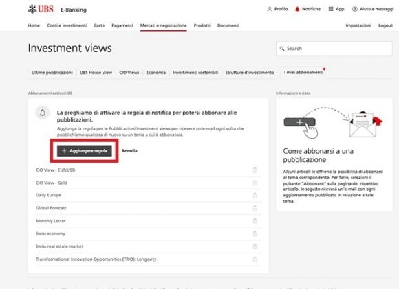 Pubblicazioni di ricerca del Chief Investment Office GWM. Con oltre 200 analisti, economisti e strategist in tutto il mondo, lavoriamo per offrire approfondimenti globali e locali 24 ore su 24, 7 giorni su 7.