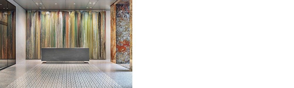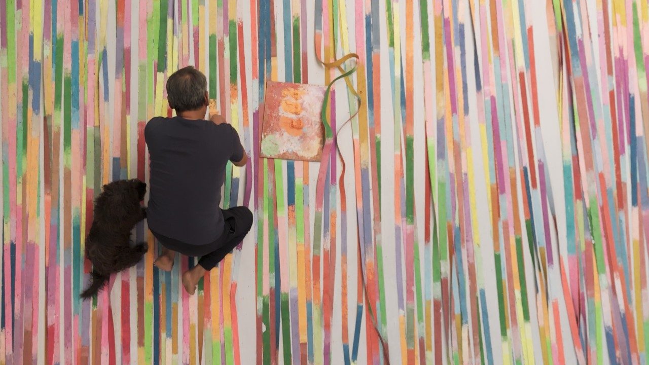 弥载映透过精细而严谨的混合、涂抹、叠加和侵蚀颜料的过程,挑战传统绘画的界限。他的画作在清迈的户外工作室的太阳和月光下诞生。这些充满活力、层次丰富的作品展示各种地形和情绪,有阴郁的无形的斑块、粉彩条纹和荧光色点等。