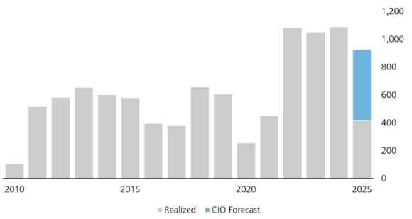 在地緣政治風險可能居高不下之際,我們認為,黃金依然是投資組合中有效的對沖及多元化工具。投資需求和全球央行買盤為金價形成支撐。許多央行希望提高準備資產多元化,減少美元在準備中的比重。隨著談判推進,相關機遇也隨之浮現。根據世界銀行今年2月份發佈的數據,未來10年烏克蘭重建總成本可能達到5,240億美元,這是2024年烏克蘭名義GDP的2.8倍。我們認為,這將在與重建相關的行業創造大量需求,有利於在當地和歐洲擁有生產設施的公司。在此背景下,債券和股票市場的精選機會值得關注。